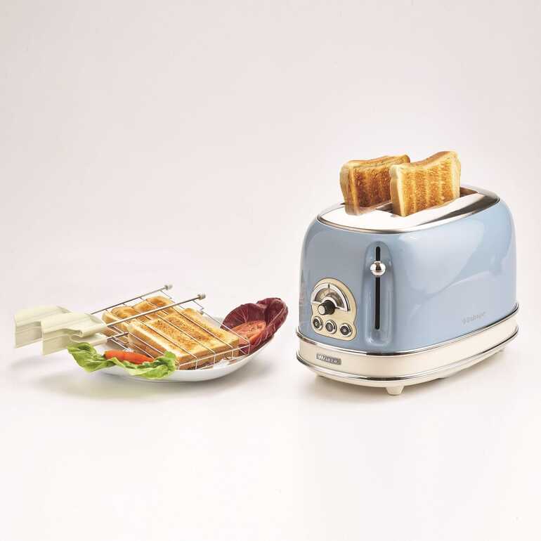 Ariete Vintage Elektrikli Ekmek Kızartma Makinesi, benzersiz şekilleri ve pastel renkleriyle mutfağınızı süsleyen tasarım ekmek kızartma makinesidir.