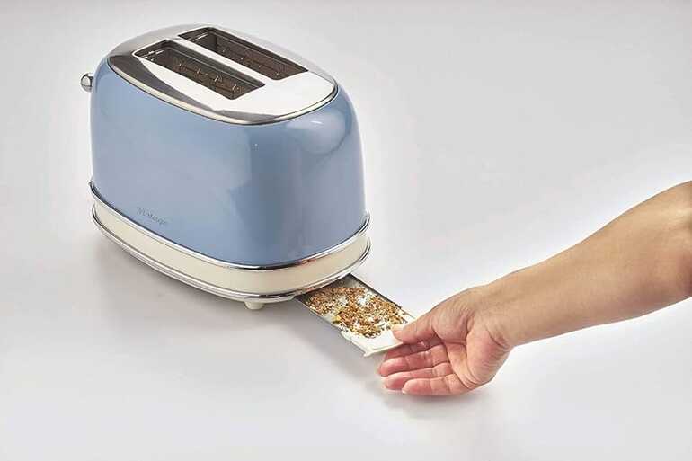 Vintage elektrikli ekmek kızartma makinesinde ekmek dilimlerini 6 farklı kızartma seviyesinde kızartmak için 2 yuva bulunur. Tost hazır olduğunda otomatik çıkarma fonksiyonu, ekmek dilimini güvenli bir şekilde almanızı sağlar. Çıkarılabilir kırıntı tepsisi kolay temizlik sağlar ve alt kablo bölmesi yerden tasarruf etmenizi sağlar.