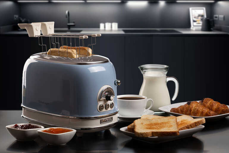 Ariete Vintage Elektrikli Ekmek Kızartma Makinesi, benzersiz şekilleri ve pastel renkleriyle mutfağınızı süsleyen tasarım ekmek kızartma makinesidir.