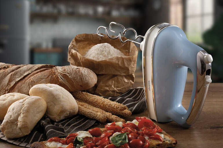 Mikser, tatlı ve tuzlu tarifleri hızlı ve pratik bir şekilde hazırlamanıza yardımcı olur. Biri çırpma, diğeri yoğurma için olmak üzere 2 elektrikli çırpıcıyla birlikte gelir. Kek, ekmek, pizza hamuru ve krem şanti yapımı için idealdir. 450 watt gücü sayesinde en sert hamurları bile kolayca yoğurabilir.