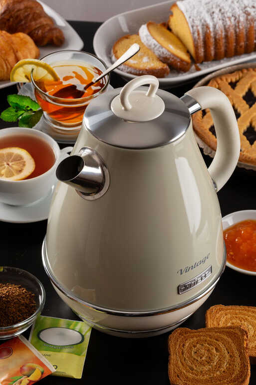Kıvrımlı ve retro hatlara sahip, kablosuz tabanlı ve vintage çizgiye katkıda bulunan 1,7 litre kapasiteli su ısıtıcısı